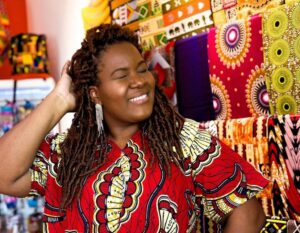 Toalá Antonia, com raízes angolanas, transforma paixão por tecidos africanos em negócio lucrativo em São Paulo.