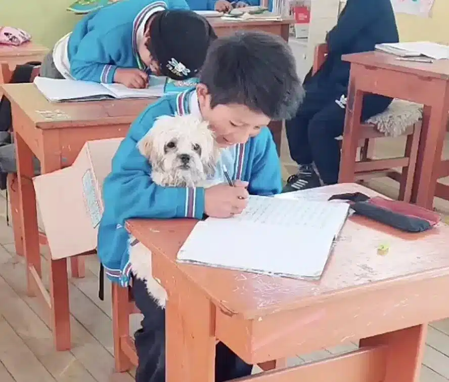 Uma professora em uma escola infantil no Peru emocionou ao permitir que um aluno trouxesse sua cachorrinha para a sala de aula.